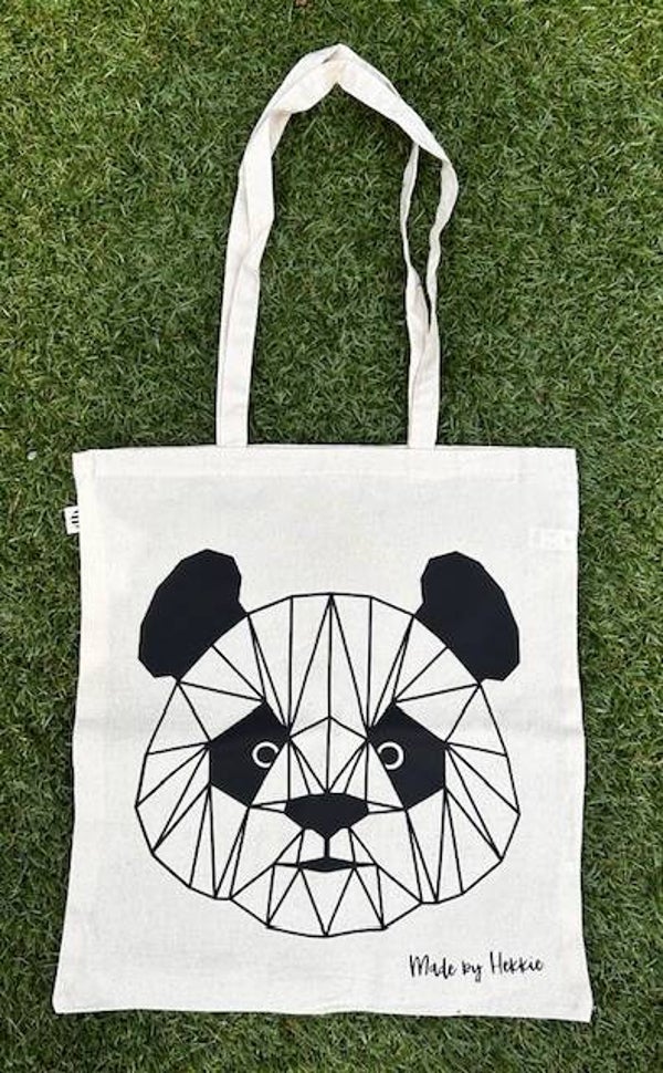 Maak indruk met deze geometrische canvastas. Bedrukt met een geometrische afbeelding. De afbeelding is beschikbaar in twee designs beschikbaar, namelijk in een wolf en een panda!